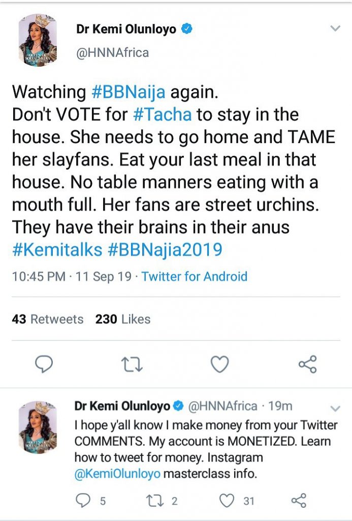 See Kemi’s tweets and fans reactions below.