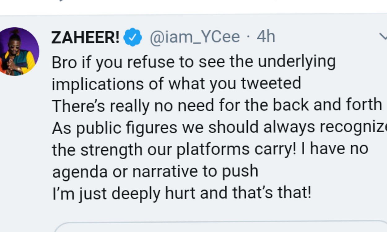 However, Nigerian afropop super singer and rapper, Ycee has taken to his micro-blogging platform, Twitter to voice out on the current trend, xenophobia.