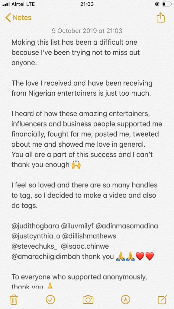 The Imo State born said she couldn’t start tagging everyone of them, that’s why she decided to create a video slide of all the celebrity supporters