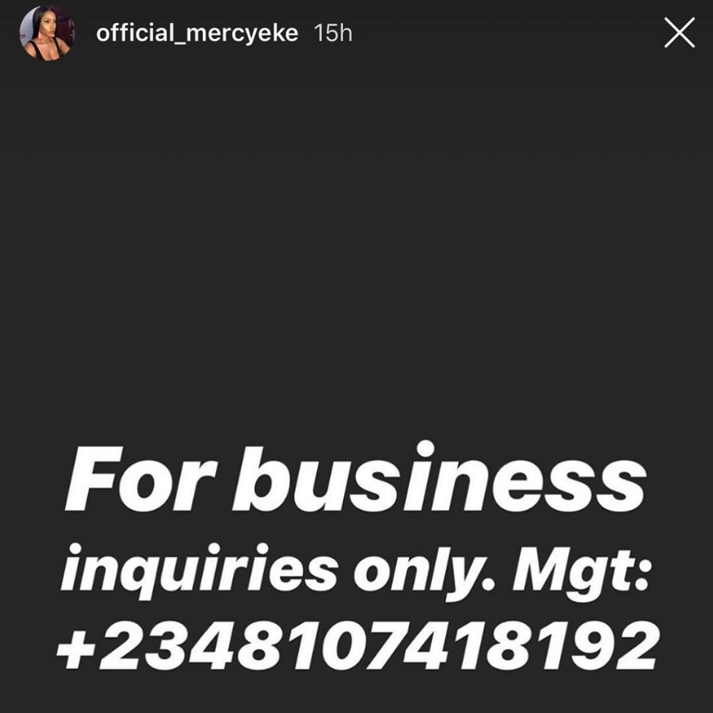 This happened after Mercy shared on her Instastory about her new management where she wrote “For business inquiries call management” plus a phone number not belonging to MC Galaxy.