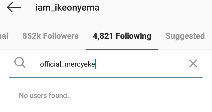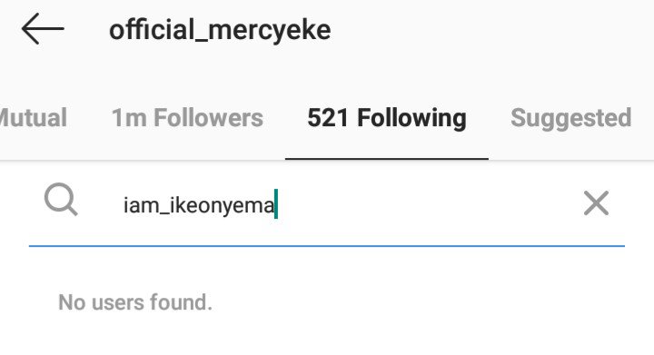 In view of that, Mercy unfollows Ike on Instagram which in turn got Ike to unfollow her.
