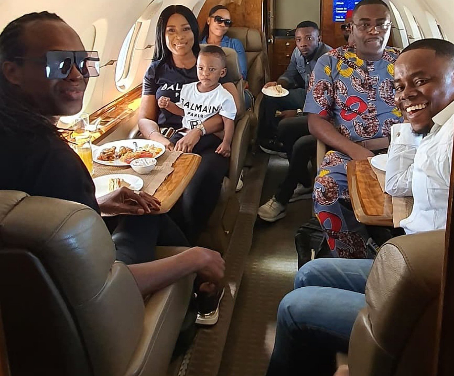 In a post shared on her social media page, it shows herself, her son, Jayce, younger sister, Benita, younger brother, Peks and some of her Uncles in the private jet.