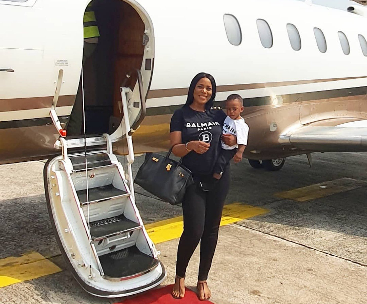 “Jayce flying his first Private Jet at 1! Hehe. You better always obey your mother o. Off to Owerri with the clan for @sandraikeji wedding.”