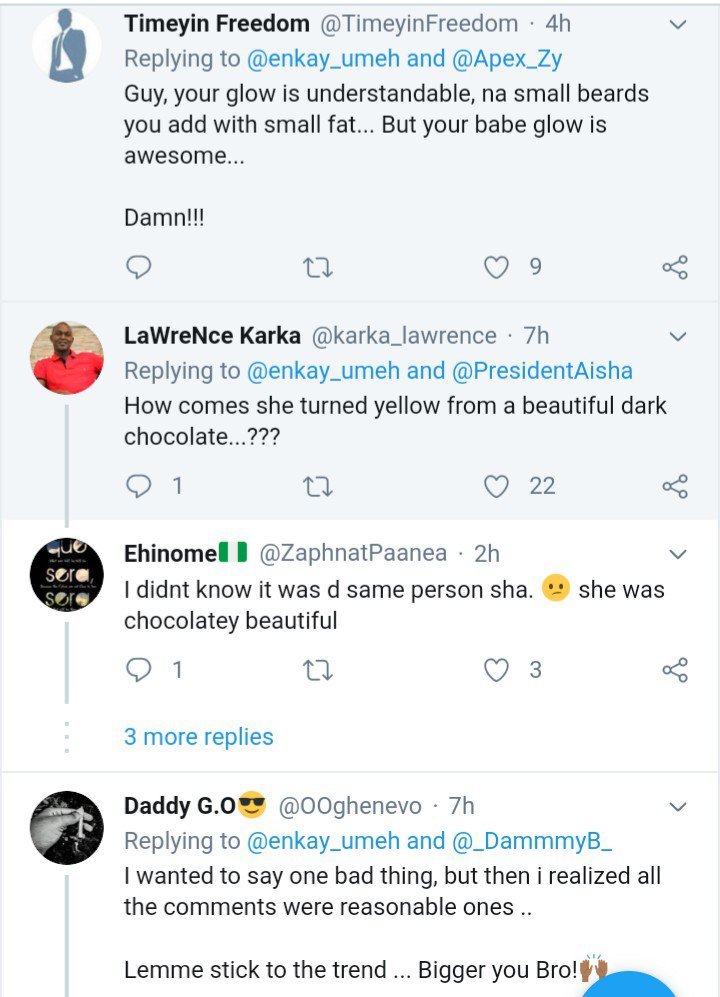 Meanwhile, her followers took to the comment to congratulate them on their forthcoming union while few commenters are bothered about the skin transformation of the lady.
