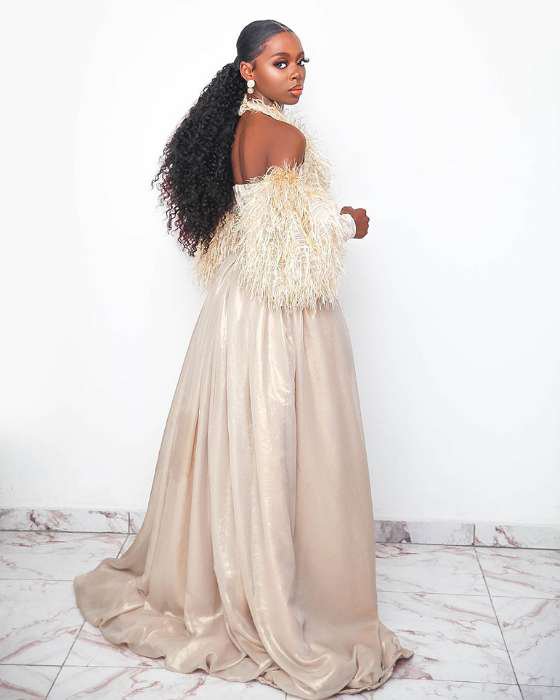 The oobiuku designed dress got Diane in a stunning look as she poses on a red carpet for photoshoot prior to the movie premiere.