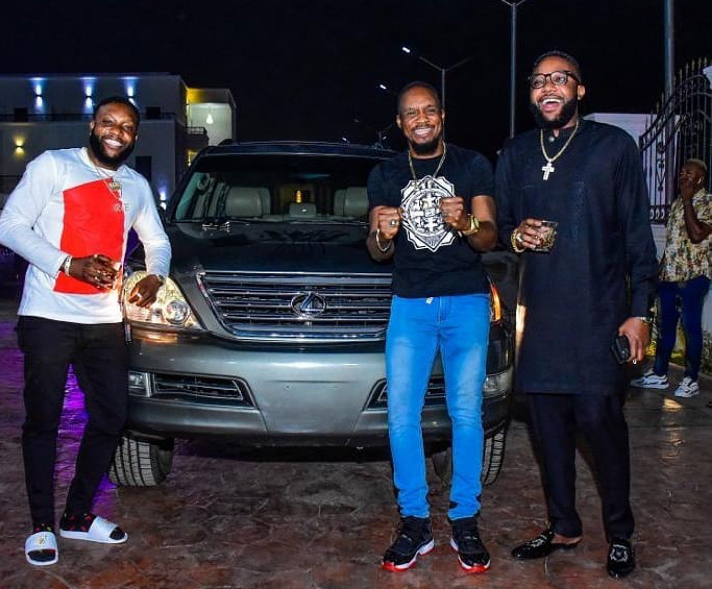 In a post shared on his Instagram page, he was spotted with his wife, KCee and E-money after the Lexus SUV was presented to him.