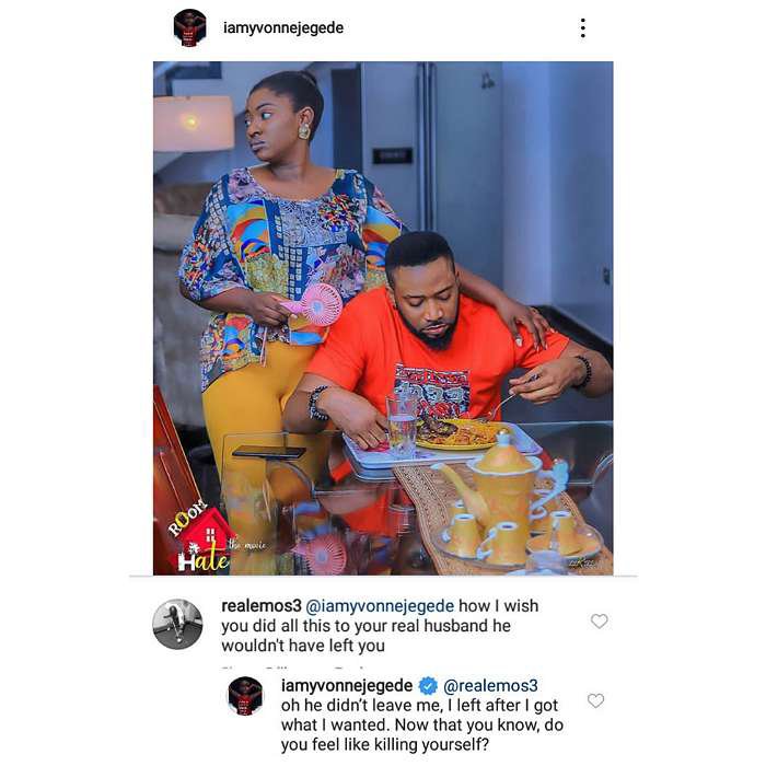 However, the troll identified as @realemos3 dropped a comment telling Yvonne that her husband wouldn’t have left her if she had been treating him nicely, how she does to her Nollywood colleague.