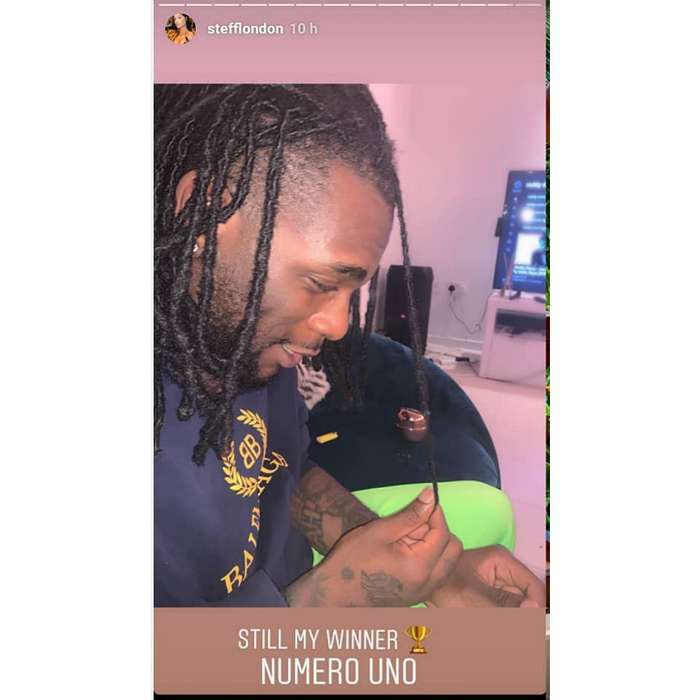 In a social media Instastory post, Stefflon writes, “Still my winner, numero uno”.