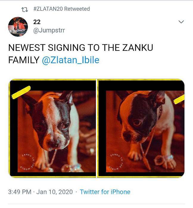 However, after the tweet, he shared photos of a dog, Astalavi welcoming him into Zanku Records.