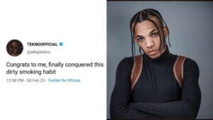 The Abia State native took to his Instagram page to share the photos of him in the wonderfully designed outfit standing behind his car and the other inside the Mavin Records headquarter.