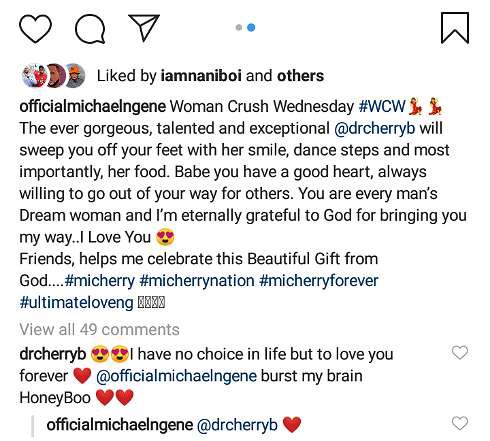 However, Michael took to his Instagram page today, Wednesday to lavishly shower his bae, Cherry with some sweet messages as his Woman Crush Wednesday (WCW).
