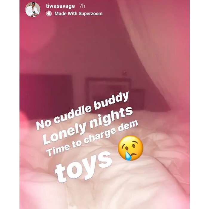 Taking to her Instastory, the singer wrote, “No cuddle buddy. Lonely nights. Time to charge them toys”
