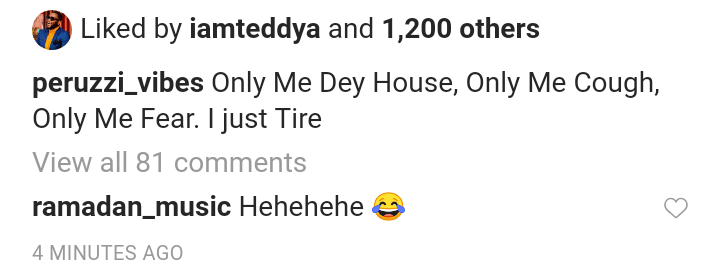 The artist made this known today when he posted photos of himself on Instagram and captioned it thus; “Only Me Dey House, Only Me Cough, Only Me Fear, I Just Tire“