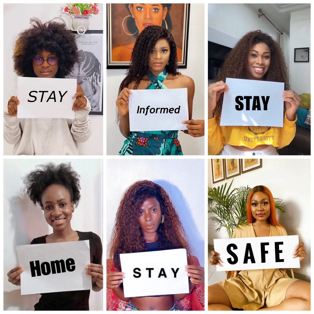 In a post shared by Anto on her micro-blogging page, it showed collage photos of herself, Khloe, Vandora, Alex, Aneeka and Princess holding up placards with some inscriptions that read, Stay Home, Stay Informed and Stay Safe.