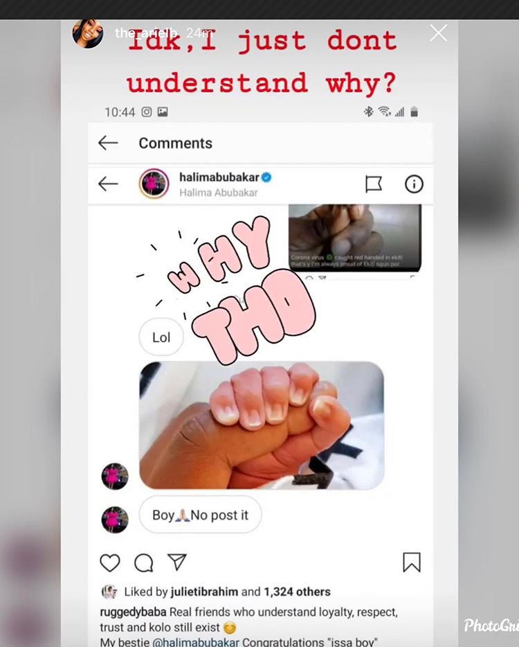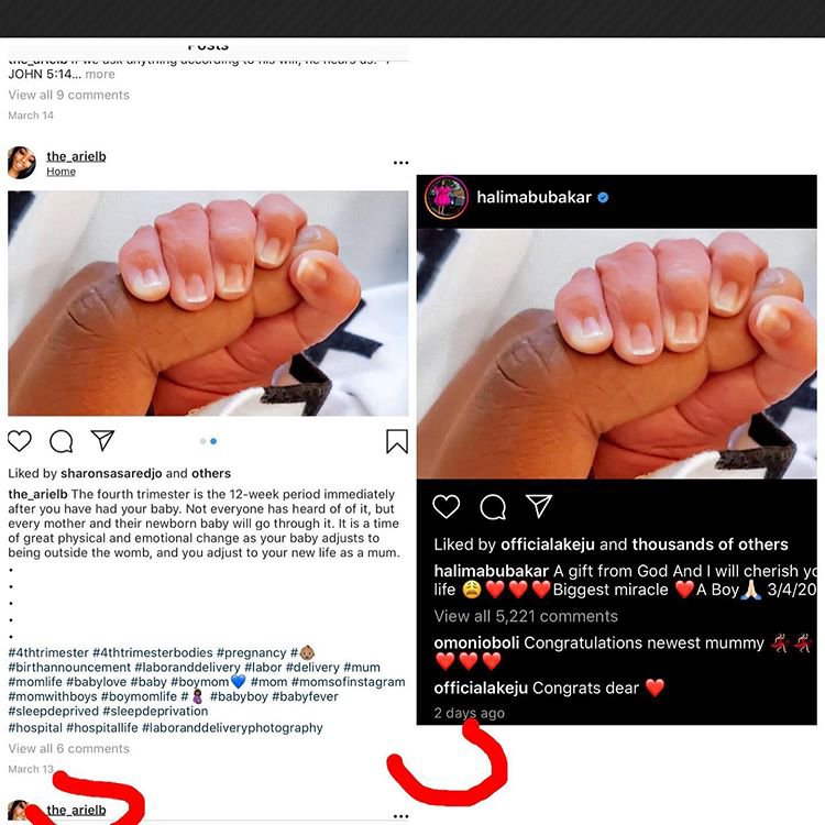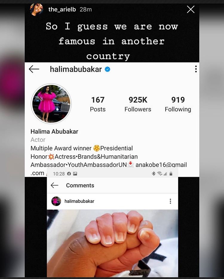 Moreover, @the_arielb on seeing what Halima did, took to her Instagram page to share some screenshots proving that the baby picture belongs to her. “I don’t just understand why. So I guess we are famous in another country”, @the_arielb captioned on her post.