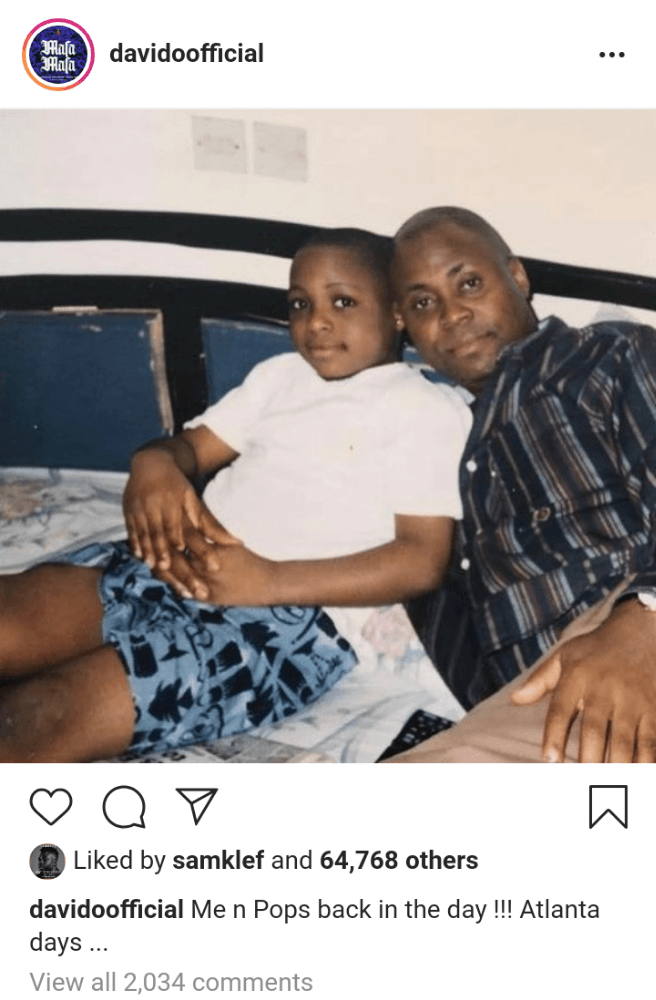 Popular Nigerian artist, David Adeleke, also known as Davido, has posted an adorable picture he took with his father so many years ago.