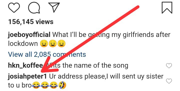 Nigerian man, Josiah Peter has indicated interest to give away his sister free of charge to fast rising Nigerian singer, Joeboy because of things the singer said he’ll give to his girlfriends once lockdown is over.