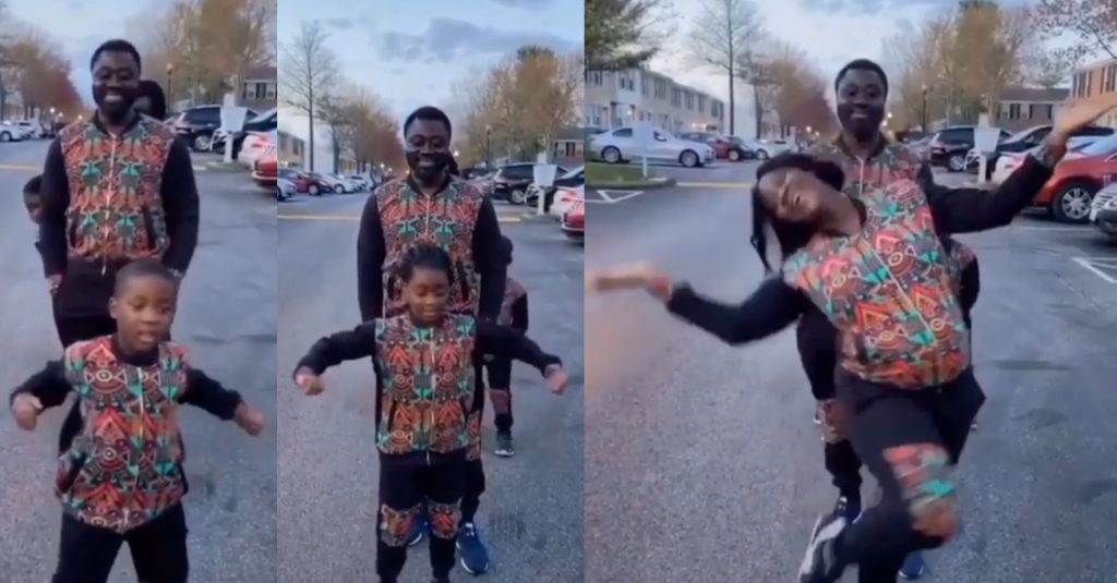 Each person has a few seconds to vibe to the song playing in the background before leaving the stage for another, while the husband and father of the family, Prince Odianosen-Okojie, stands still in between the current participant and the next persons lined up behind him.