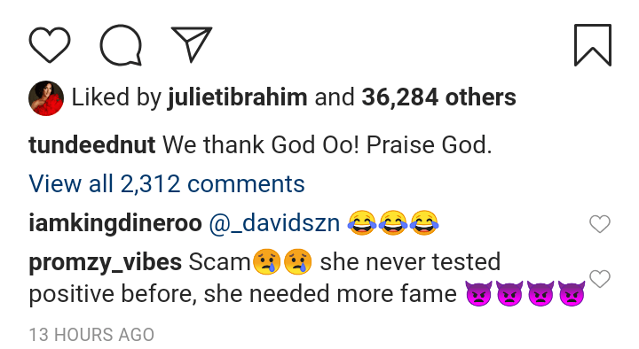 But instead of celebrating Chioma’s recovery with others, Nigerian man identified with the Instagram handle, @promzy_vibes, took to Tunde’s comment section to slam the celebrity couple, saying Chioma never tested positive to the virus before.
