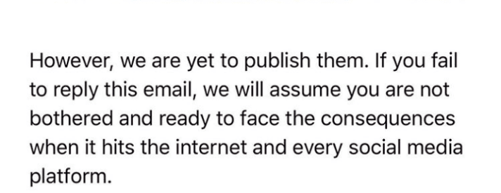 Writing further, she said in her words: “I am sharing this ahead of your threats to release these edited/false images because I don’t have any money to give you” she thundered.
