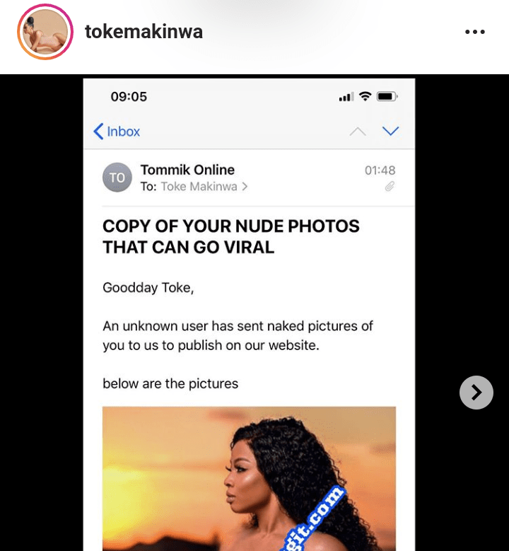 Popular Nigerian On-Air Personality, Toke Makinwa has raised alarm on what she calls a calculated move to blackmail and make her part with her hard earned money.