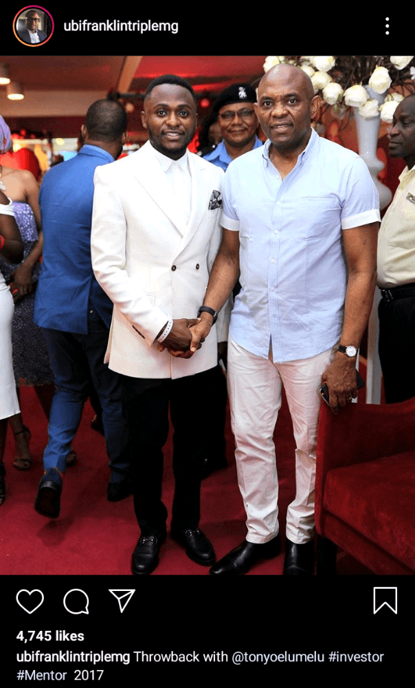 Young Nigerian music executive, Ubi Franklin has revealed that the Chairman, United Bank for Africa, UBA, Tony Elumelu is his mentor.