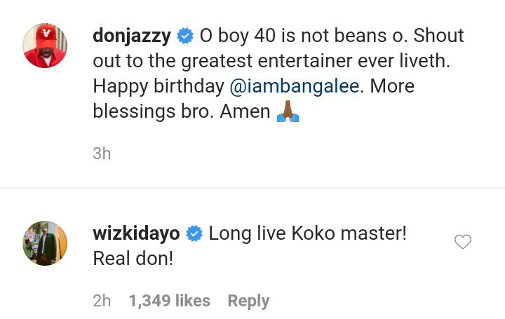“O boy 40 is not beans o. Shout out to the greatest entertainer ever liveth. Happy birthday @iambangalee. More blessings bro. Amen”
