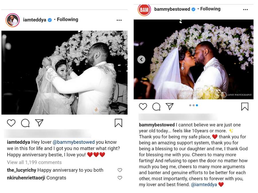 • Teddy A and Bam Bam have turned one year in marriage together.