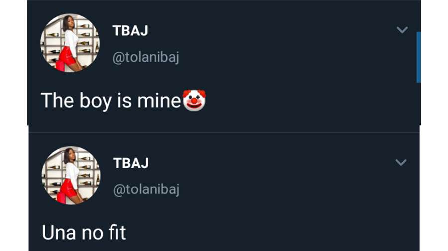 However, in her first tweet, TBaj wrote, “The boy is mine Fc, focus on your fave. You look foolish in my mentions.”