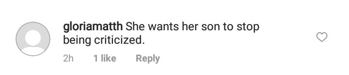 @gloriamatth, “She wants her son to stop being criticized.”