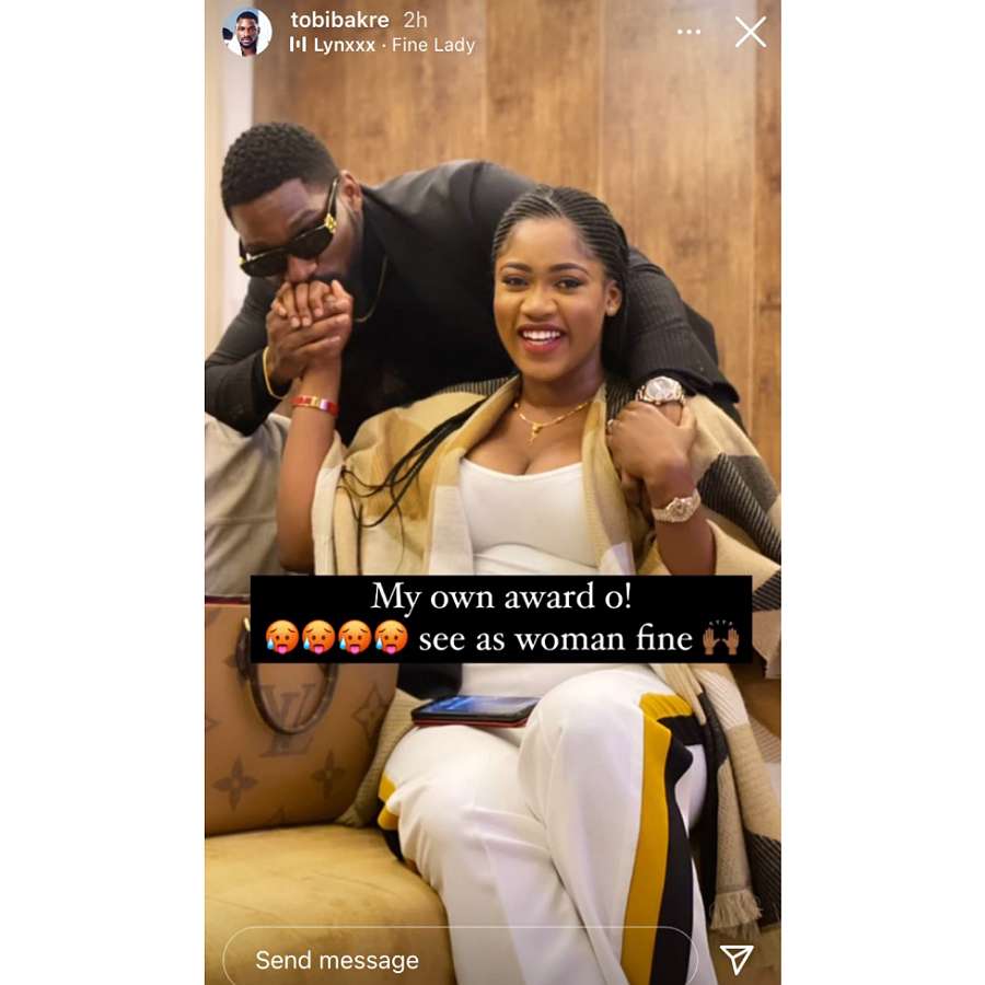 • Tobi unveiled Anu Oladosu as his girlfriend and fiancee on Sunday, February 21, 2021 which happens to be the D-Day for 14th Headies Award.