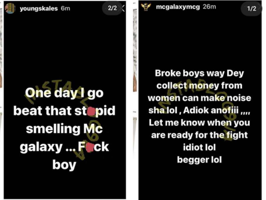 “One day l go beat that stupid smelling Mc galaxy .. Fuck boy,” Skales wrote.