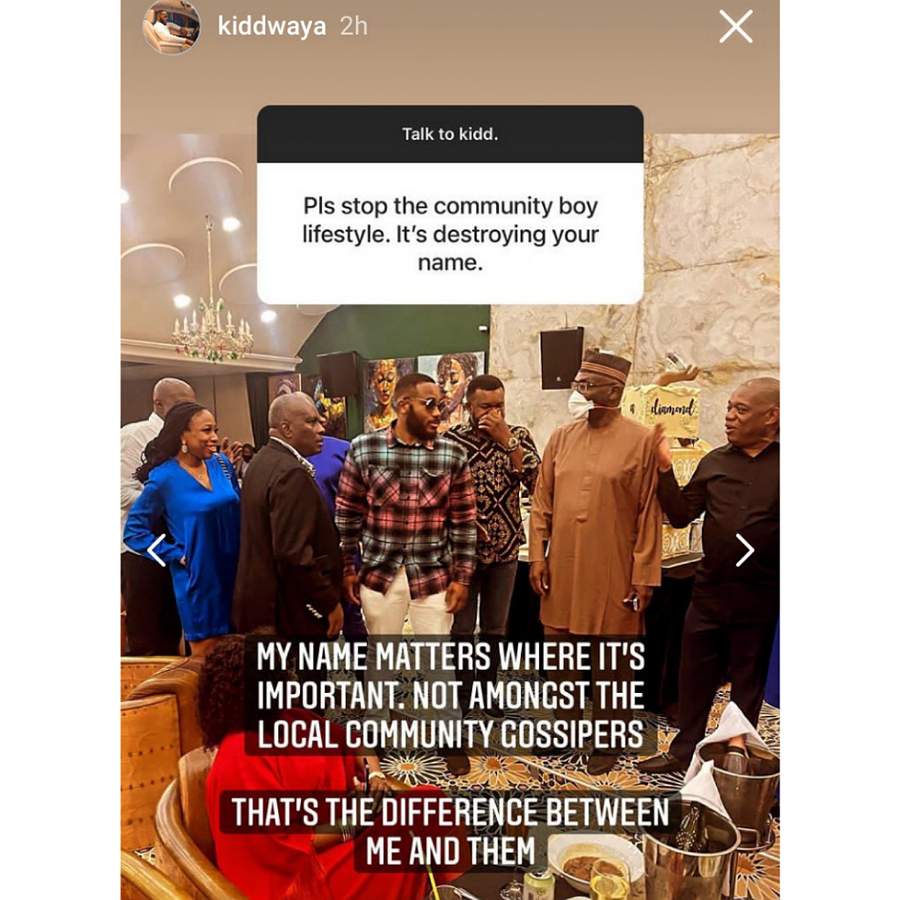 Kiddwaya: “MY NAME MATTERS WHERE IT’S IMPORTANT NOT AMONGST THE LOCAL COMMUNITY GOSSIPERS THAT’S THE DIFFERENCE BETWEEN ME AND THEM.”