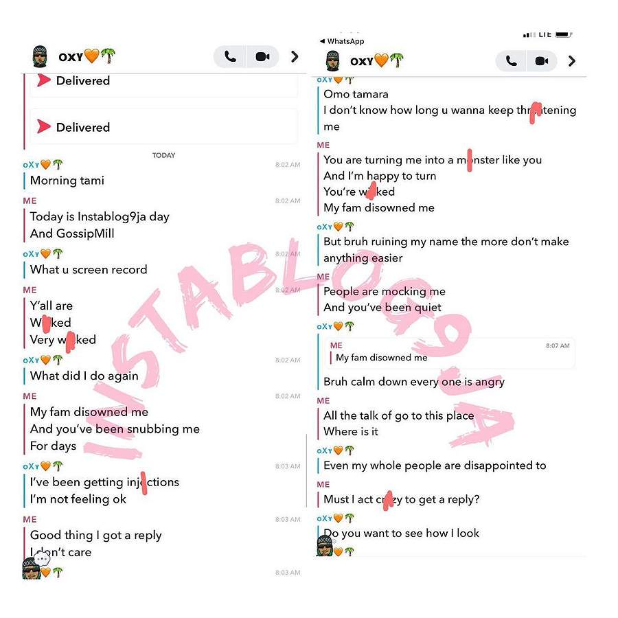 The chats also revealed the advice from Oxlade’s friend, who happens to be a close friend of Tamara, identified as Ojahbee.