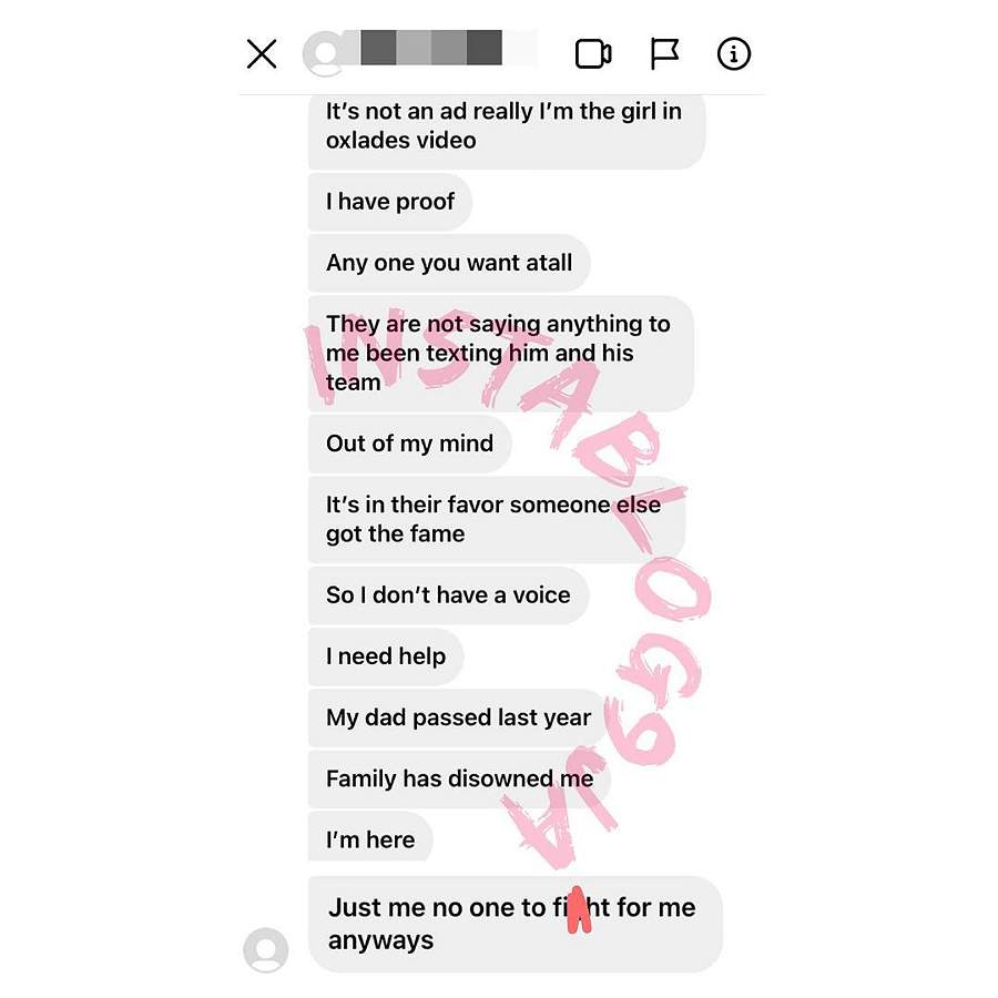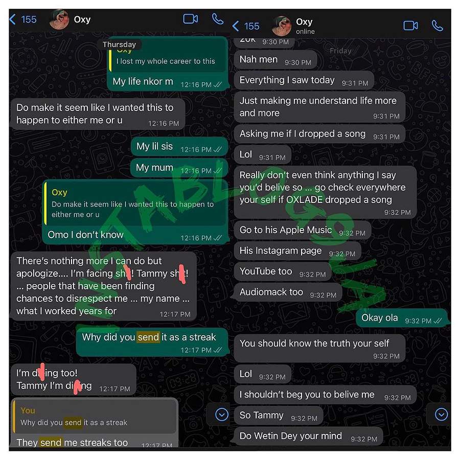 Tamara made this known in a private message sighted by ValidUpdates, where she also claimed that the singer, Oxlade has been snubbing her since the tape got leaked on the internet.
