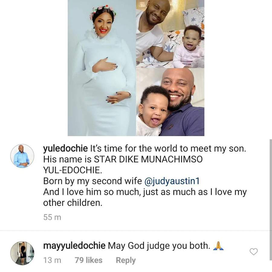 “May God judge both of you,” May Yul Edochie’s comment read under the husband’s Instagram post.