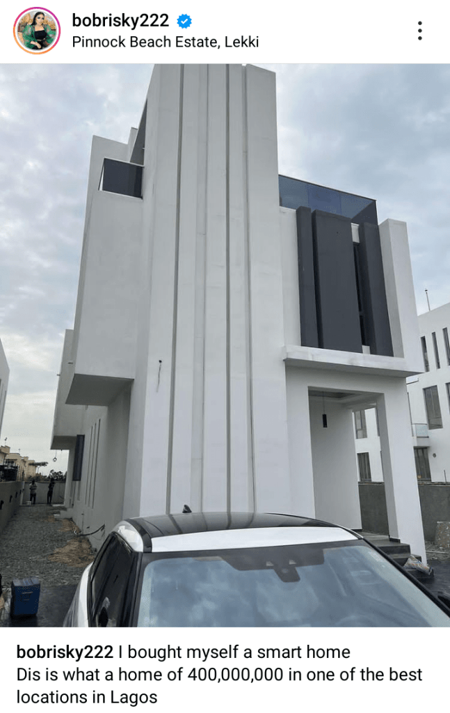 “I bought myself a smart home. Dis is what a home of 400,000,000 in one of the best locations in Lagos,” Bobrisky wrote.