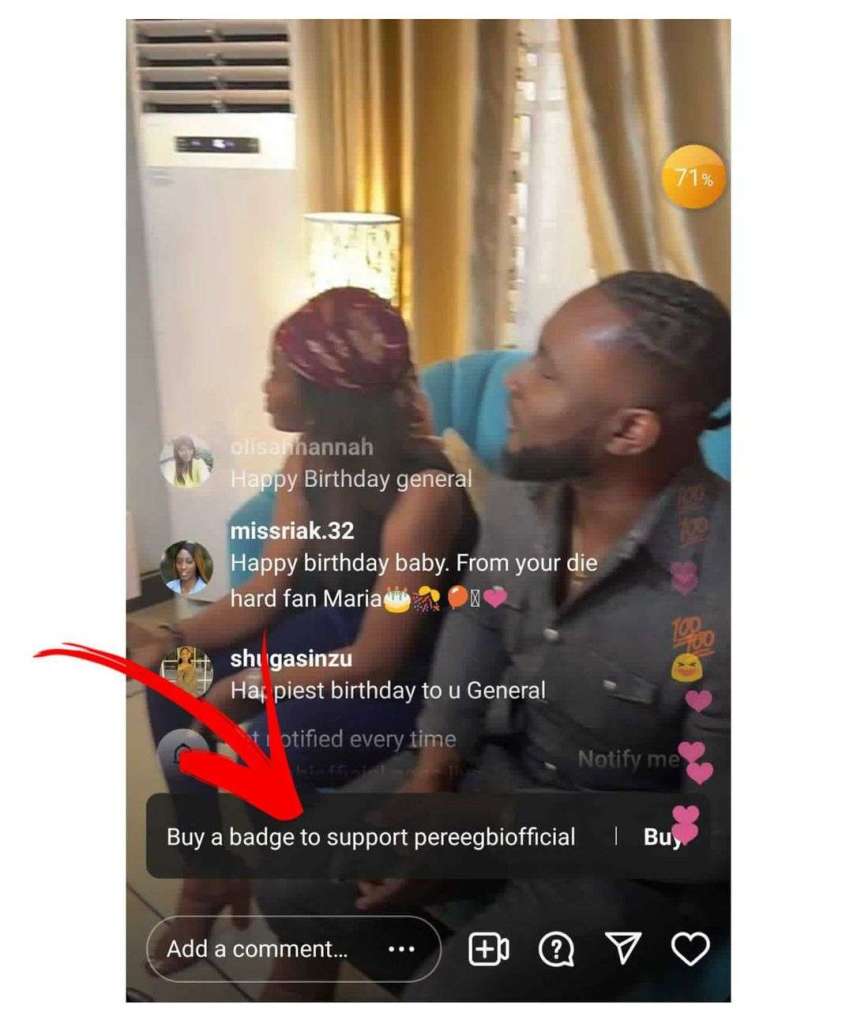 According to the statement, Pere solicited for people to buy a badge through his Instagram live to support him on his birthday.