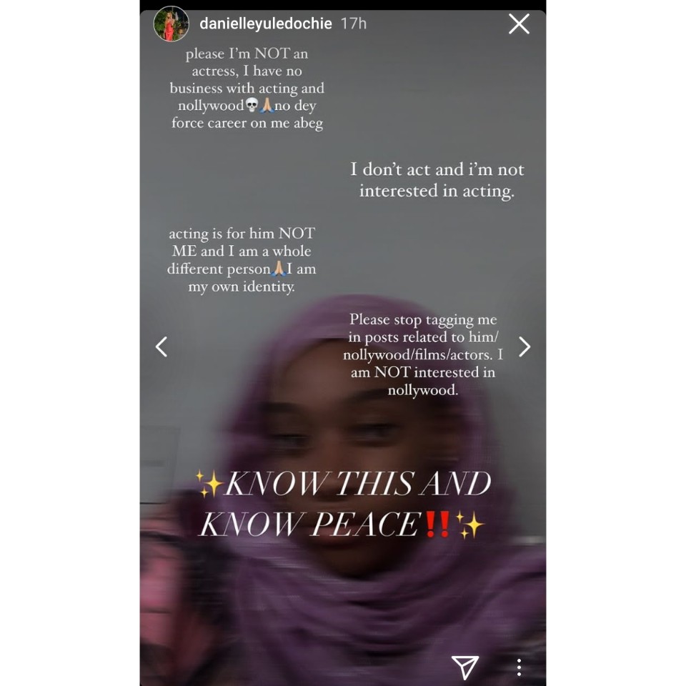 nollywood. KNOW THIS AND KNOW PEACE,” Danielle wrote.