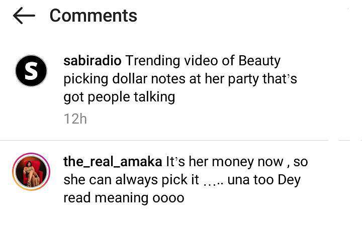 However, on sighting the video on social media platform, Amaka took to comment and reacted, saying that it’s actually Beauty’s money and she can always look for the money if it goes missing.