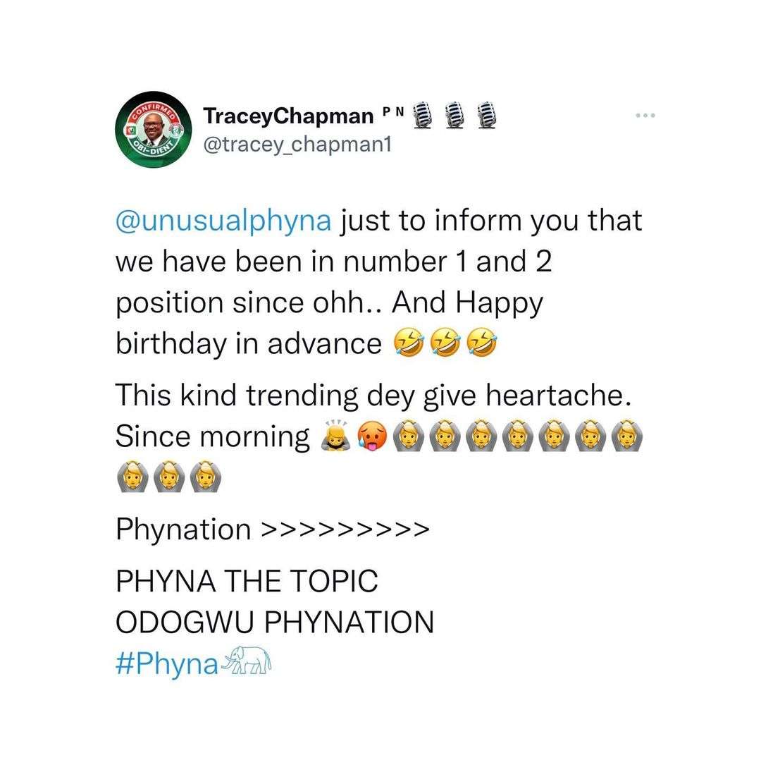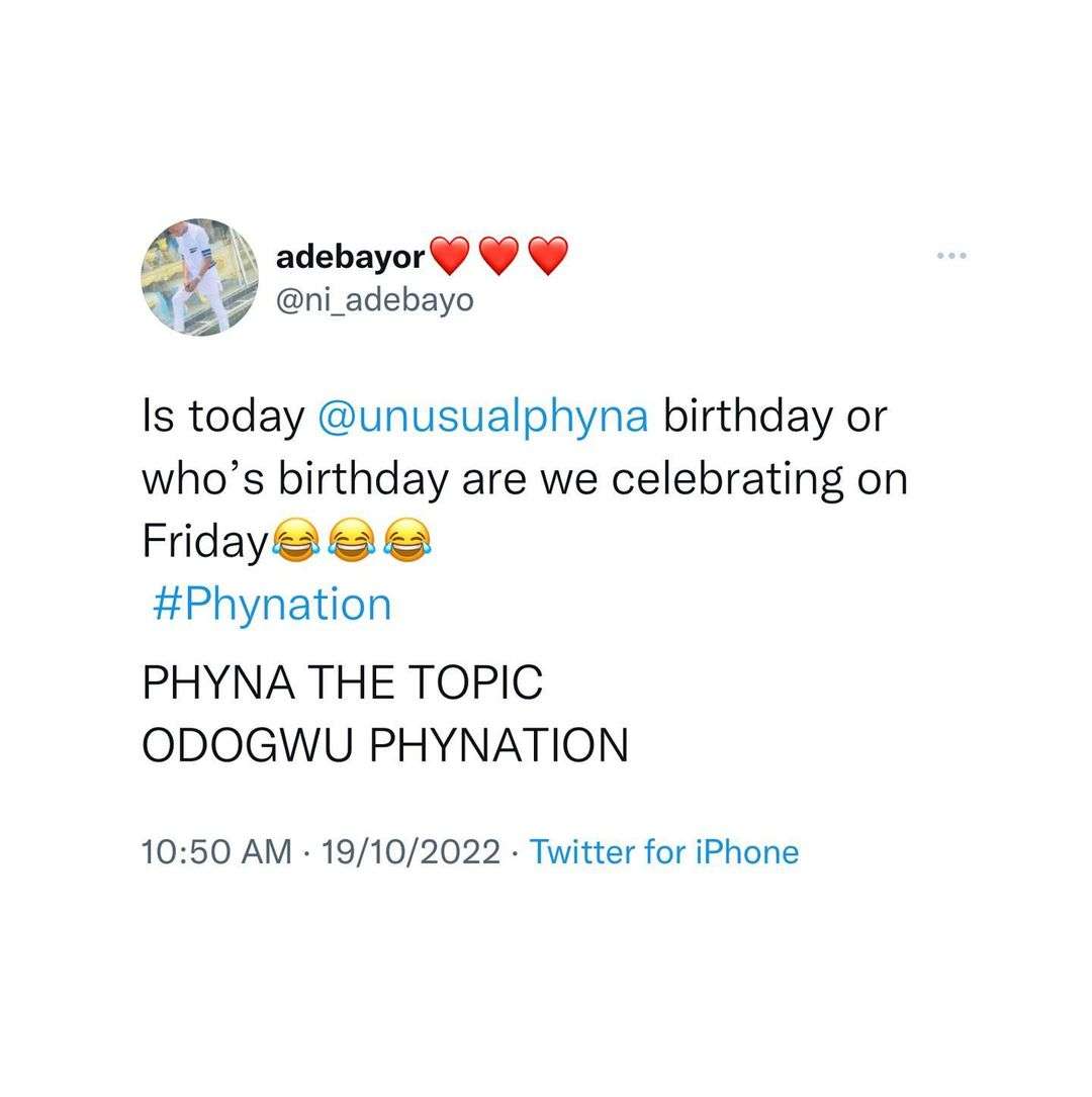Almost everyone who left a tweet noted that “Happy Birthday Phyna” would go viral on the social media trends that day.