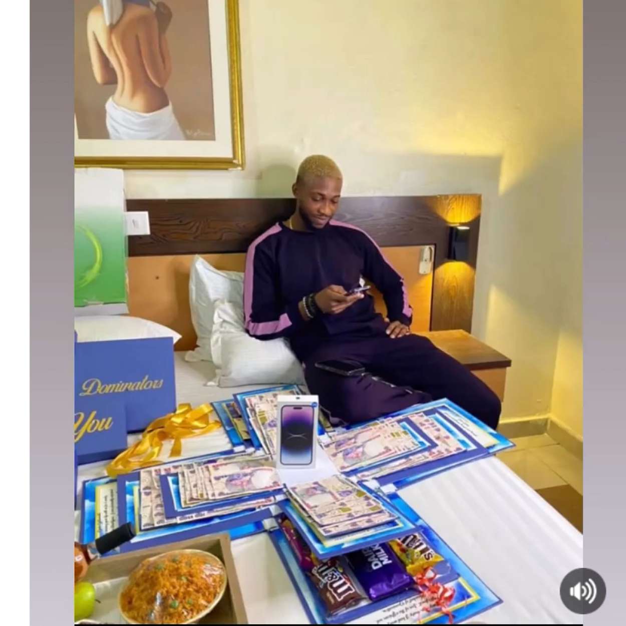 His supporters, identified as Dominators presented the gifts of iPhone 14 Pro max, money bouquet and few other stuffs to him.