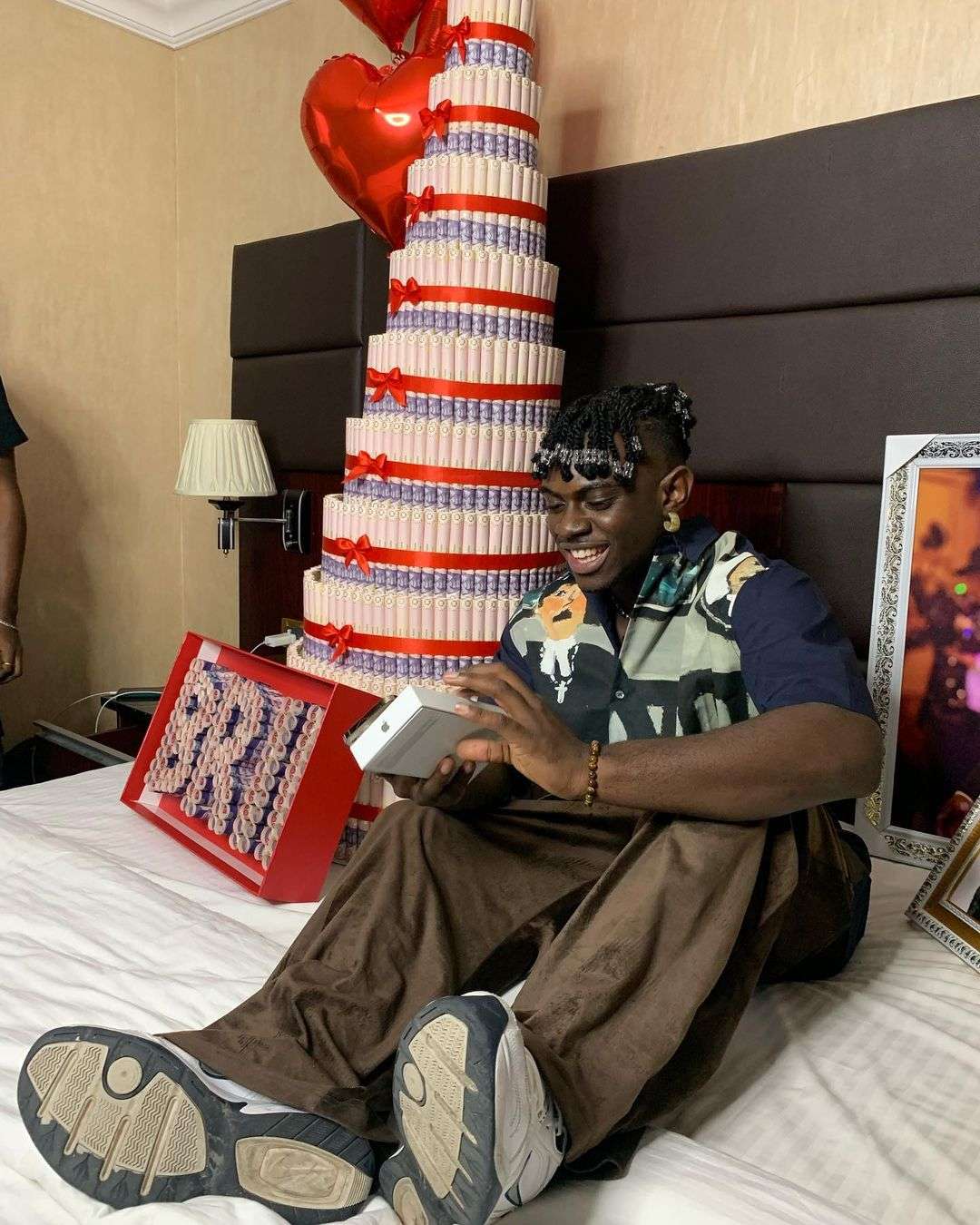 The supporters who graced his hotel room on Saturday afternoon, October 8 presented him with items like giant money cakes, money boxes, a whopping sum of ₦5 million, iPhone 14 Pro max, amongst other amazing gifts.