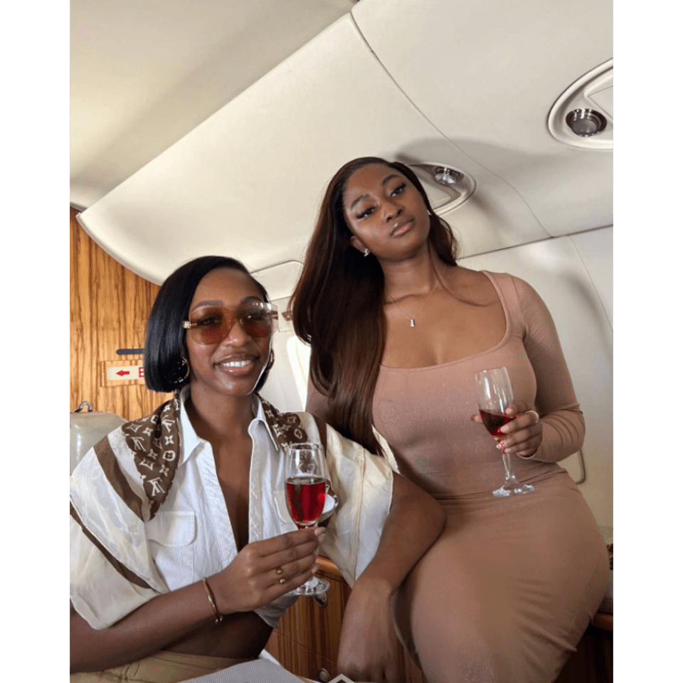 Kim lavishes herself with private jet treatment, before heading to Abuja for a mini birthday party with her family and close friends.