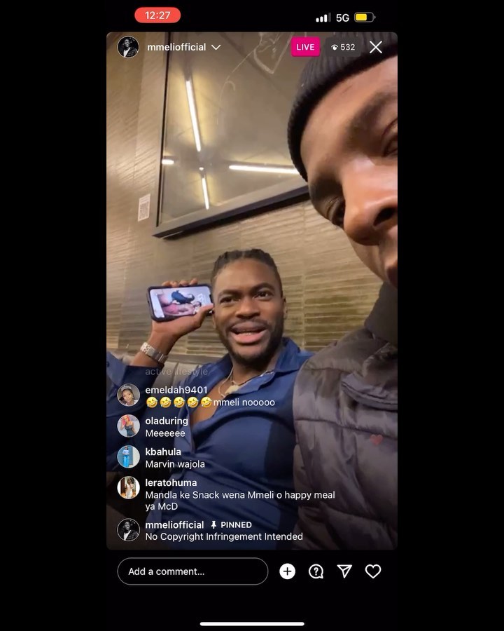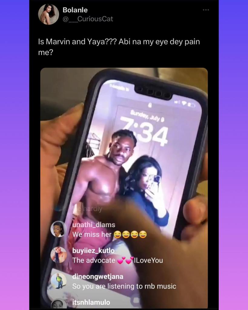 However, photos and videos made the rounds on social media after a live Instagram video propounded by BBTitans’ Mmeli. It portrayed Marvin holding up his phone, which has him and Khosi’s loved-up photo as his screensaver.