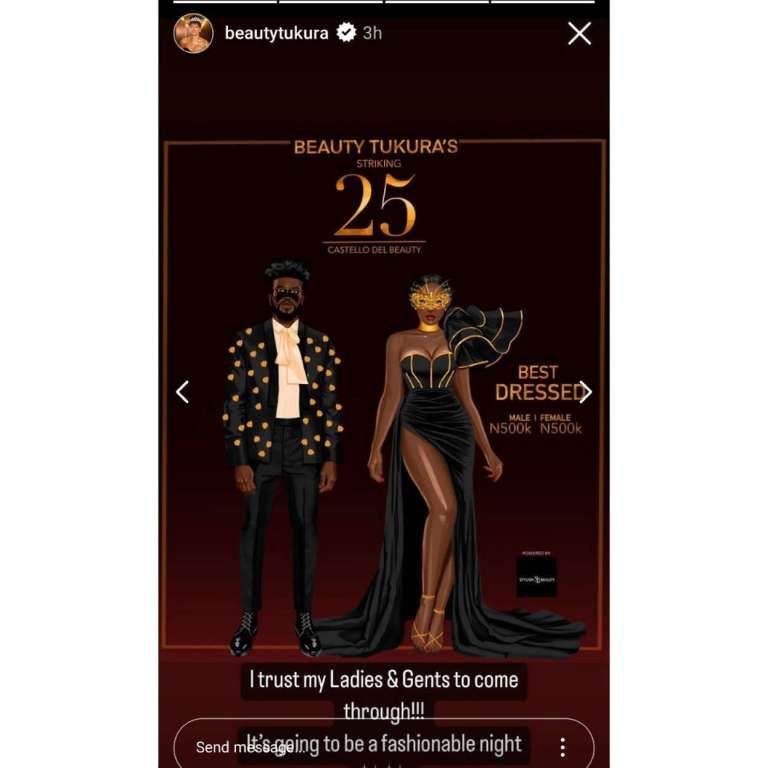 It would be recalled that during her 25th birthday on October 21, 2022, Beauty organized a fashion event where the winners of the Best Dressed went home with a whopping N500k each, male and female. There were to be only two winners from the birthday fashion event, but three winners emerged. Beauty decided to gift each of the three winners, two females and a male the N500k winning prize.