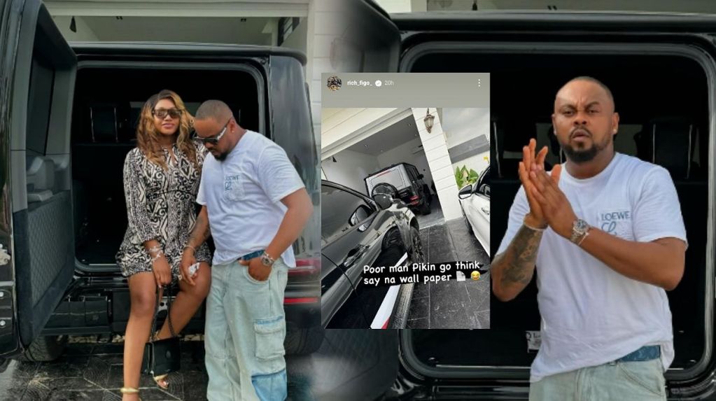 The stir was caused when Figo shared the now-viral post on his Instastory, featuring new photos of himself and Chomzy posing beside a G-Wagon. Figo’s caption read, “Poor man Pikin go think say na wallpaper.”