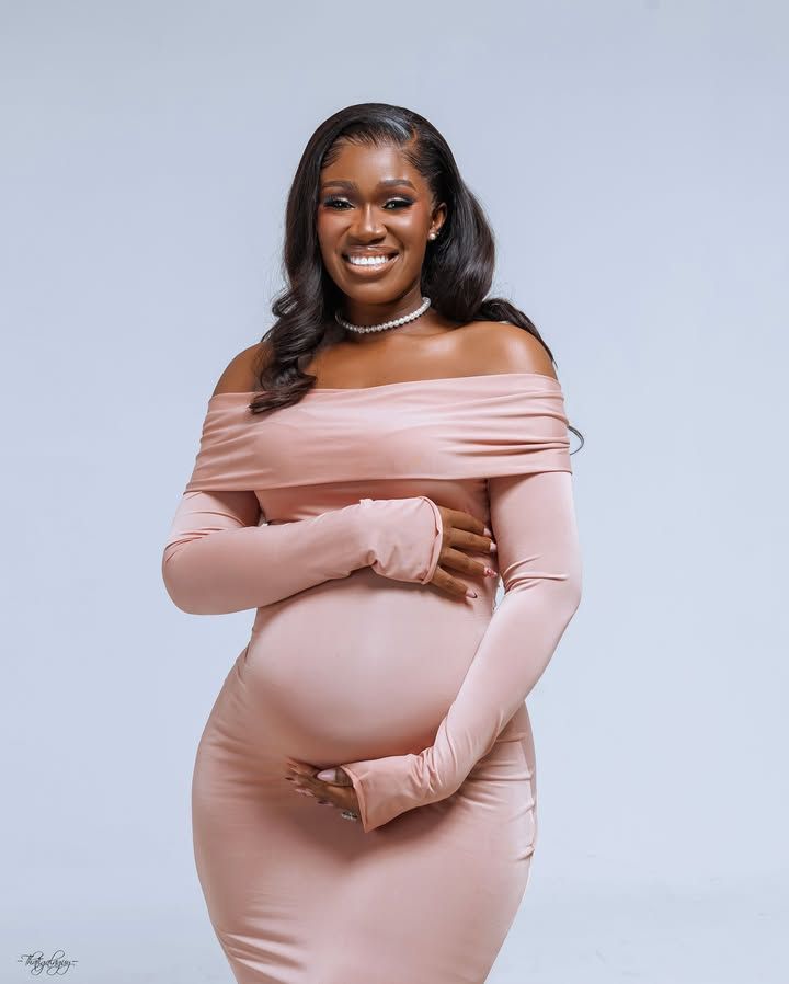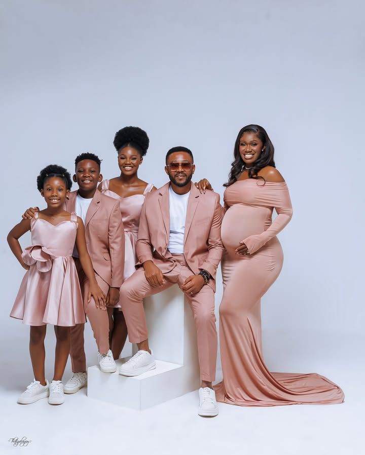 Real Warri Pikin brings sweet news to her page today. The comic star says a new baby is on the way. She shows a glow and a neat blush bump dress. Her spouse and kids join in soft rose looks.