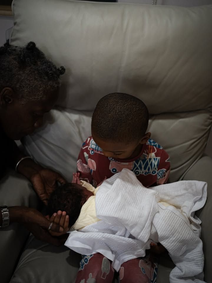 Family life now grows in calm, steady, cheerful steps. New shots show snugs, kisses, and soft, sweet looks. The boy sleeps while big bro leans in with care. Dad keeps watch and mum cradles with easy grace.