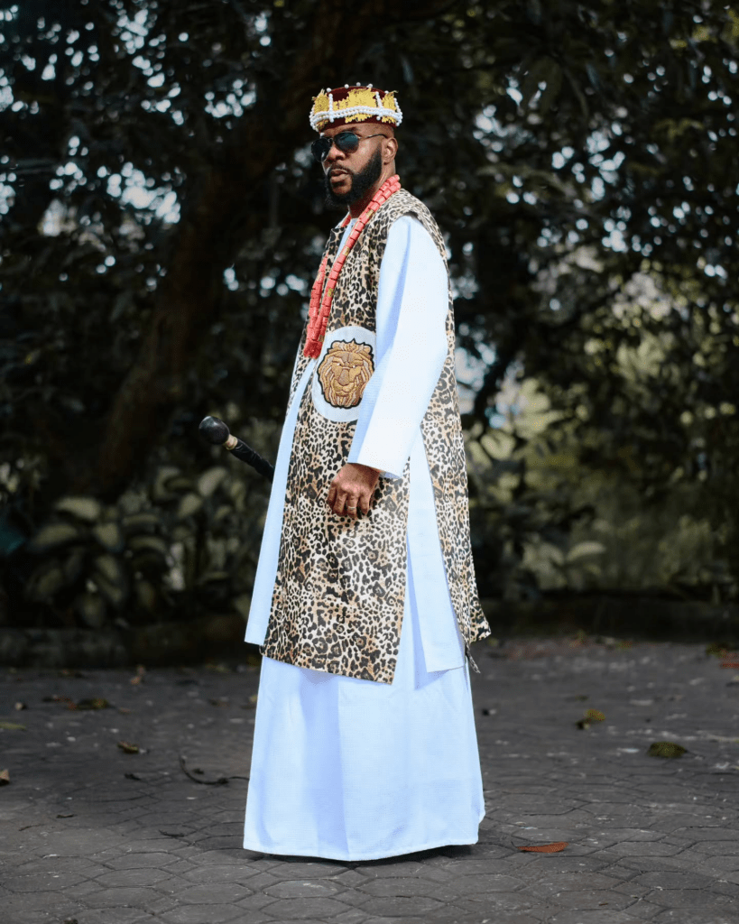 - Ebuka closes the finale in a kingly look. He models beads, a crown and staff.
